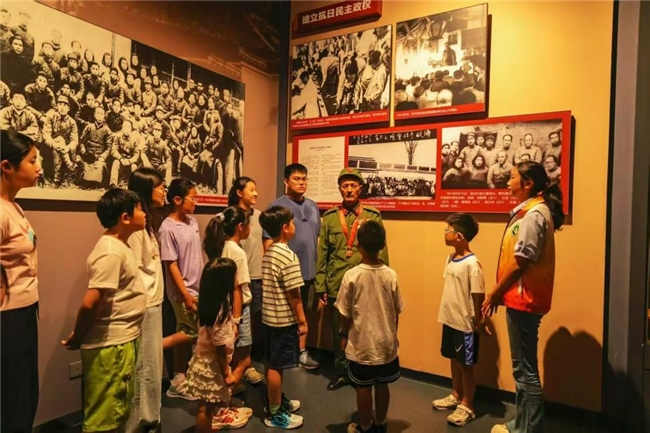 在盐城新四军纪念馆,团队特邀对越自卫反击战功臣、老党员王金龙同志,在“八一”建军节之际为青少年讲述战斗经历,寄语他们“更好地为人民服务”,上了一堂生动的爱国主义教育课。